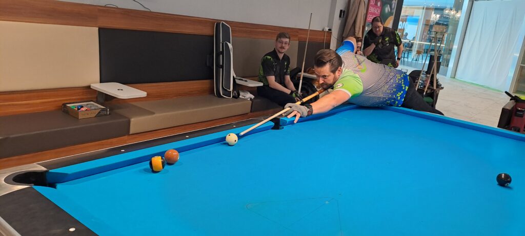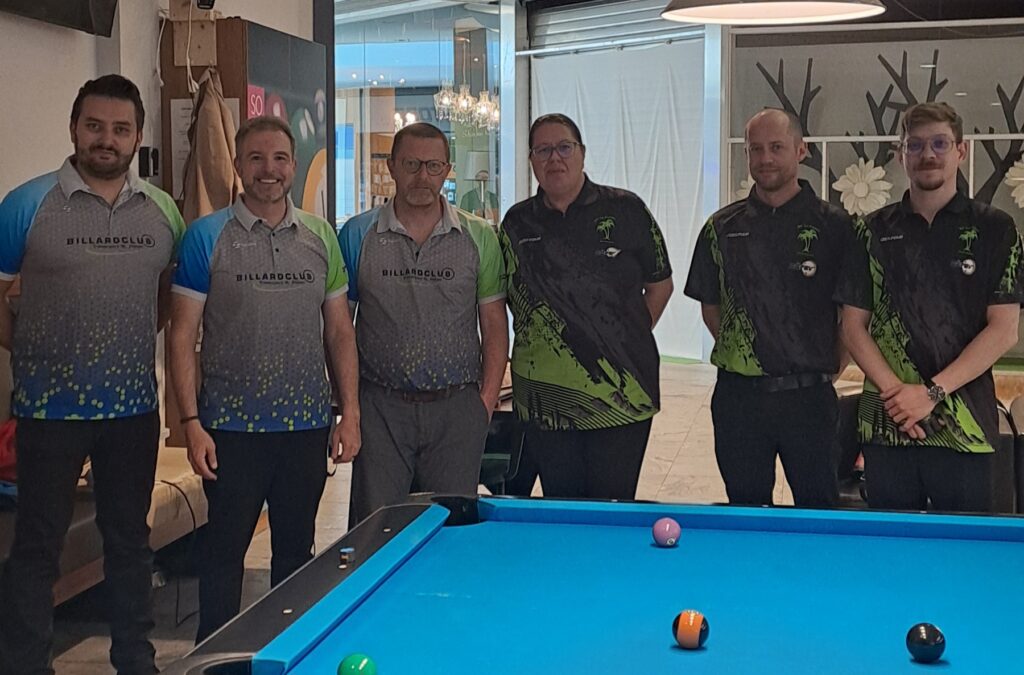 Zuerst war man gegen BC La Palma Wr.Neustadt 3 klarer Favorit, und die Spieler Andreas Pinz, David Lazendic und Christian Pfeffer konnten dies auch bestätigen: Sowohl Andreas im 14/1, David im 10- und 9-Ball und Christian im 8-Ball und 9-Ball ließen ihren Gegnern keine Chance. Andi hatte im 8-Ball zu kämpfen, drehte aber einen Rückstand mit taktischem Spiel zu einem Sieg. Endstand 6:0!