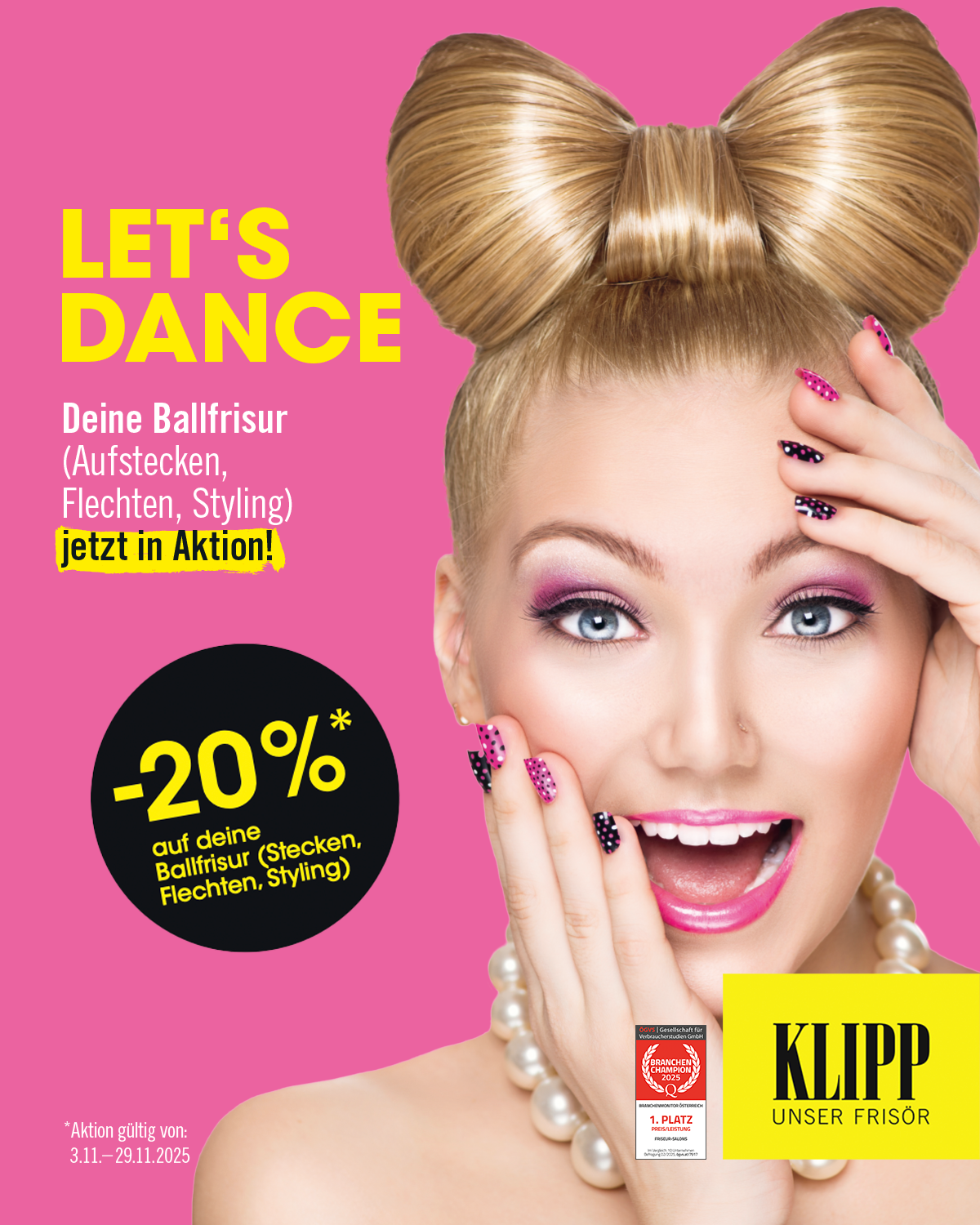 Let’s Dance – sichere dir -20% Rabatt auf deine Ballfrisur (Aufstecken, Flechten, Styling) ab 3.11. bis zum 29.11.2025!