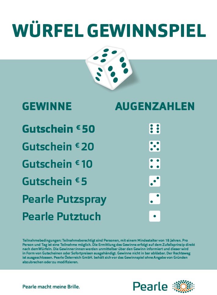 Jede Kundin und jeder Kunde darf 1x würfeln und kann mit ein wenig Glück tolle Einkaufsgutscheine*/Goodies gewinnen!